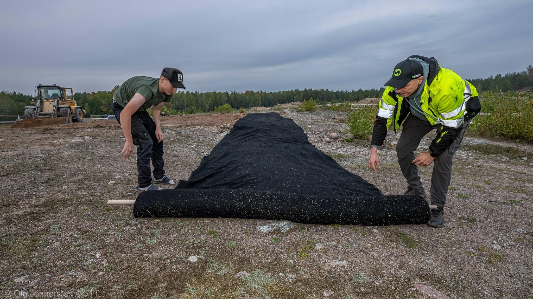 – Projektets mål är bland annat att öka steklarnas matföråd och biologisk mångfald. Vi anlägger en torräng genom att rulla ut cellulosafiltar med invävda torrängsfrön, fortsätter Ola.