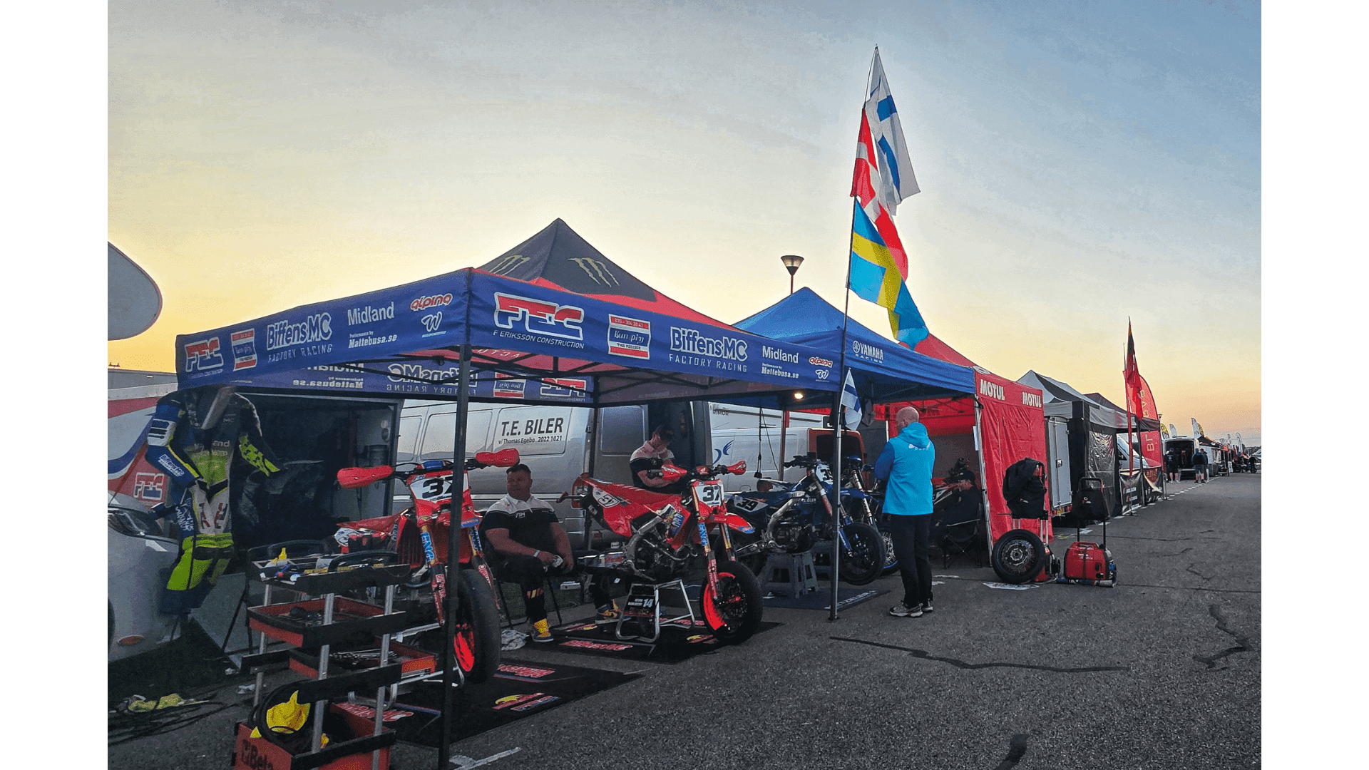 Detta var första året som vi inte var ett rent svenskt lag utan nämligen ett nordiskt lag med 3 förare från 3 olika nordiska länder, Team FIM Europe, och dem var alla laddade till tänderna. Först på plats var vår finske vän Eemeli som kom dit på tisdagen, hela 2 dagar för tidigt. Vi tolkade det som att han var extremt laddad och ville se vad som komma skulle. När jag och min sambo Annie kom dit på torsdag eftermiddag, i regn och rusk, så står Eemeli Åstedt och Rasmus Priergaard Nilsen uppställda och klara och senare på kvällen kom även vår egen svensk Kevin Karlsson.