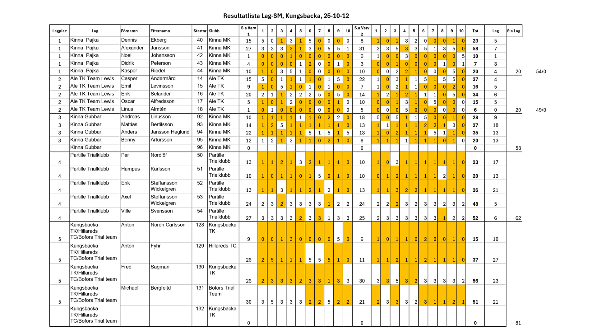 Igår, den 12 oktober, avgjordes det årliga Lag-SM i trial.